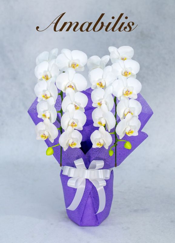 2本立ての胡蝶蘭は、個人様へのギフトに最適なサイズ感です。「ペア」を意味することから、ご結婚祝いにも喜ばれます。コンパクトで飾りやすく、お誕生日や記念日など、特別なお祝いの気持ちを伝える贈り物にぴったり。当店の通販サイトでは、様々な色や品種の高品質な胡蝶蘭を豊富にご用意しております。