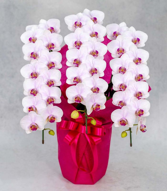 - ミディ胡蝶蘭 オリバー ストライプ 3本立 33輪以上 選べるラッピング