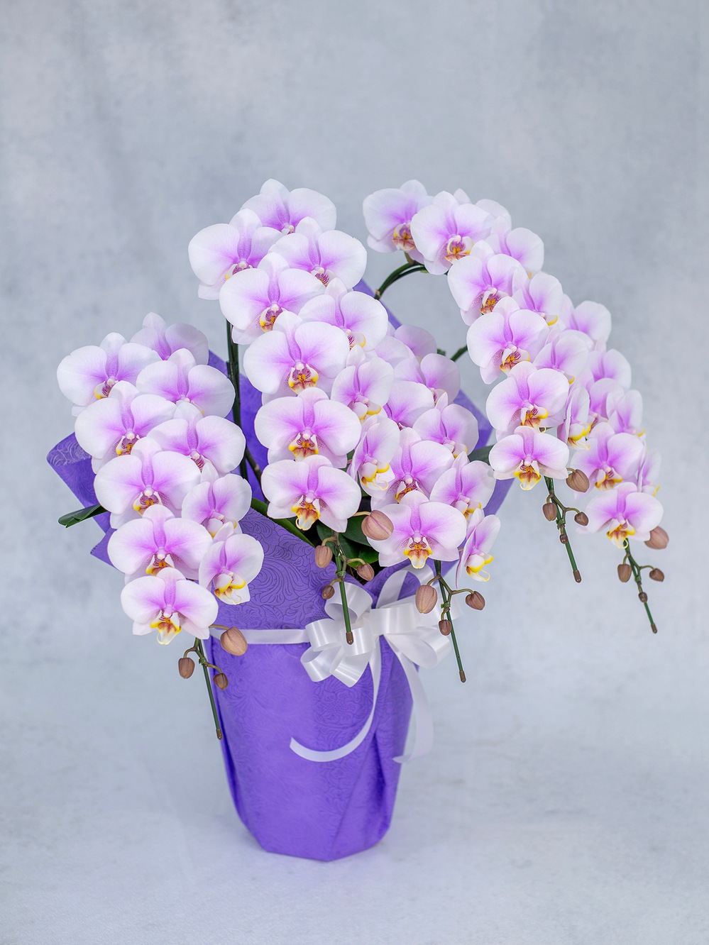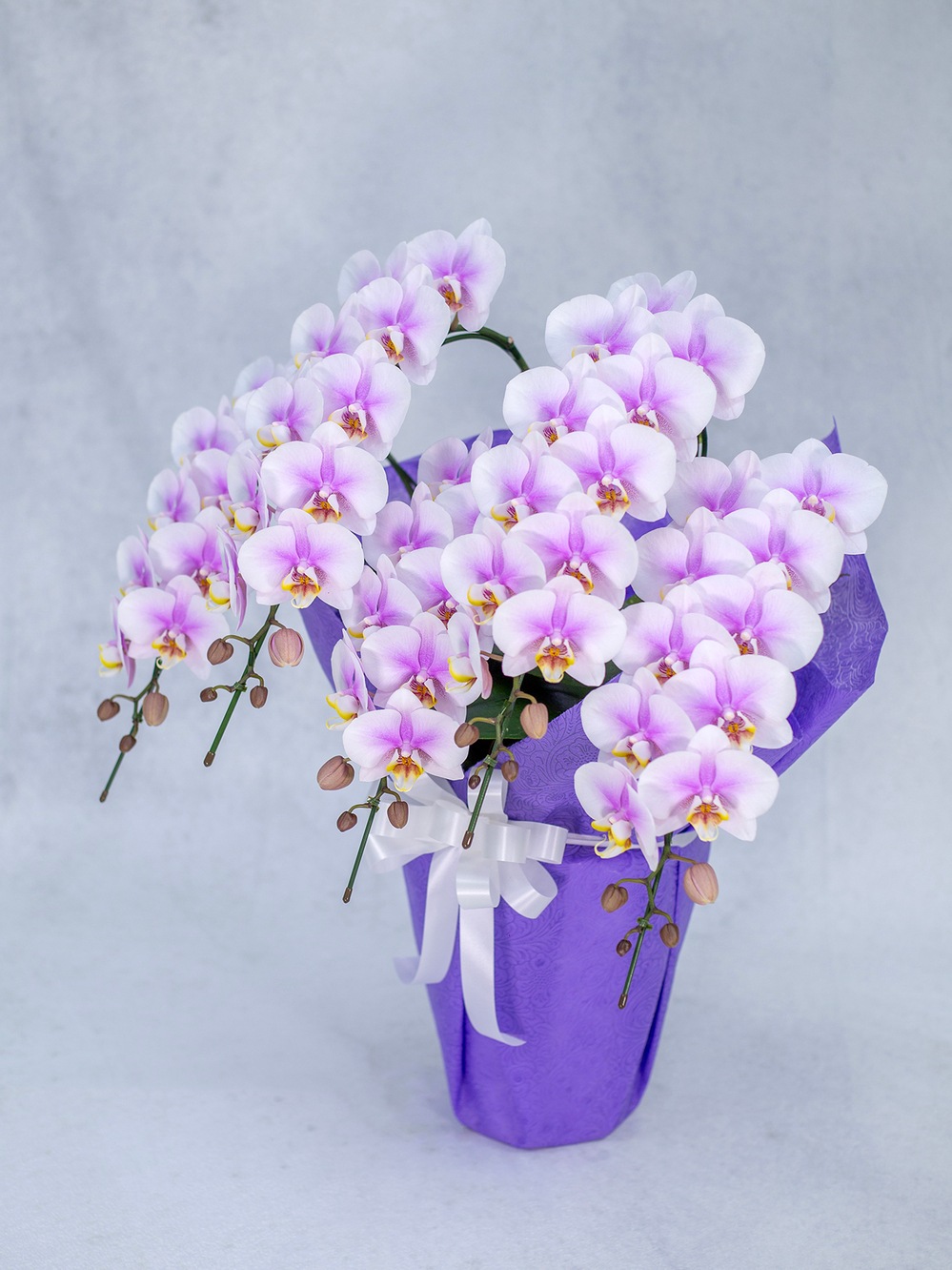 供養用ラッピングも施されており、贈り物にも最適。スタイリッシュなデザインで、控えめながらも存在感を放つ胡蝶蘭。どんな場面にも調和します。大切な瞬間を彩るために、この一鉢をお選びください。