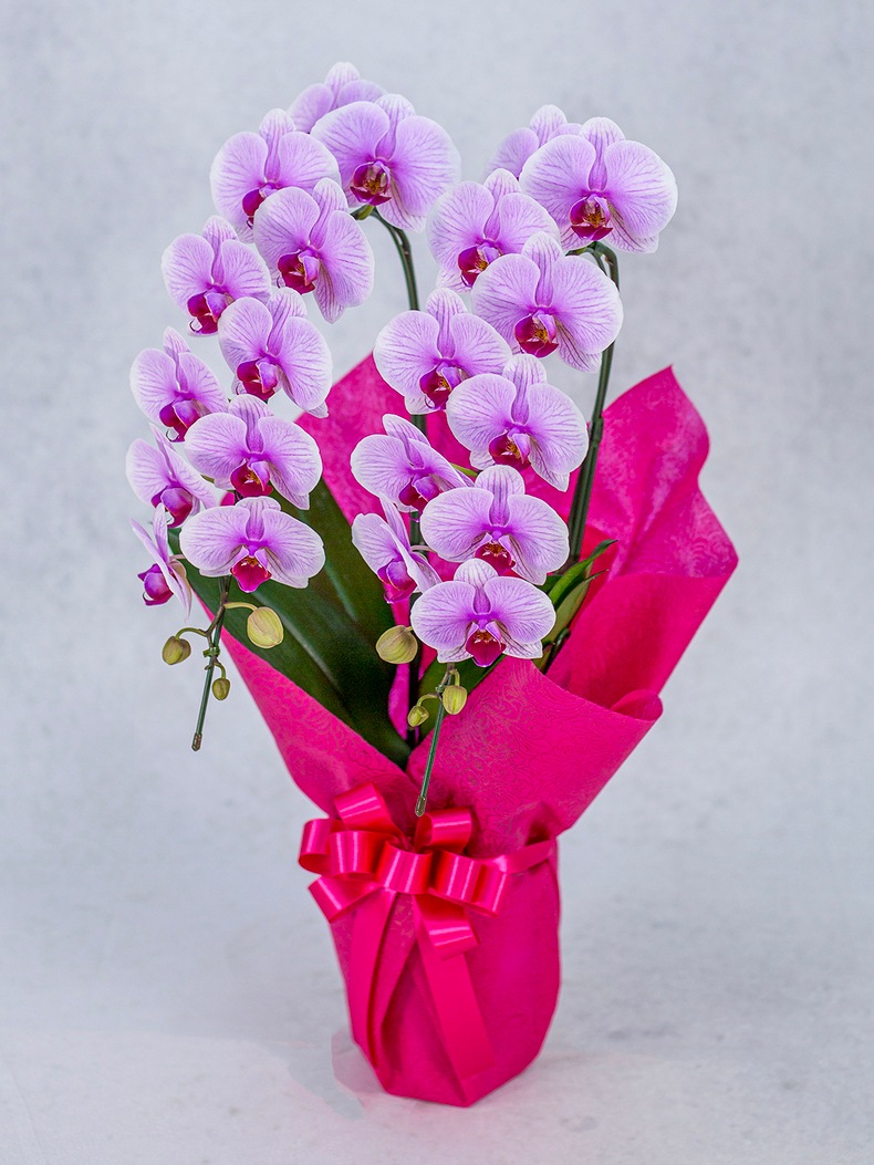 - ミディ胡蝶蘭 アポロ ピンク 2本立 18輪以上 選べるラッピング