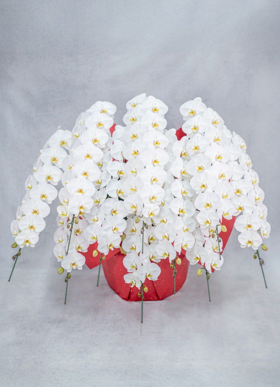 一般的な胡蝶蘭より長い育成期間をかけ、花持ち・茎の強さ・花並びが美しい株のみを厳選。