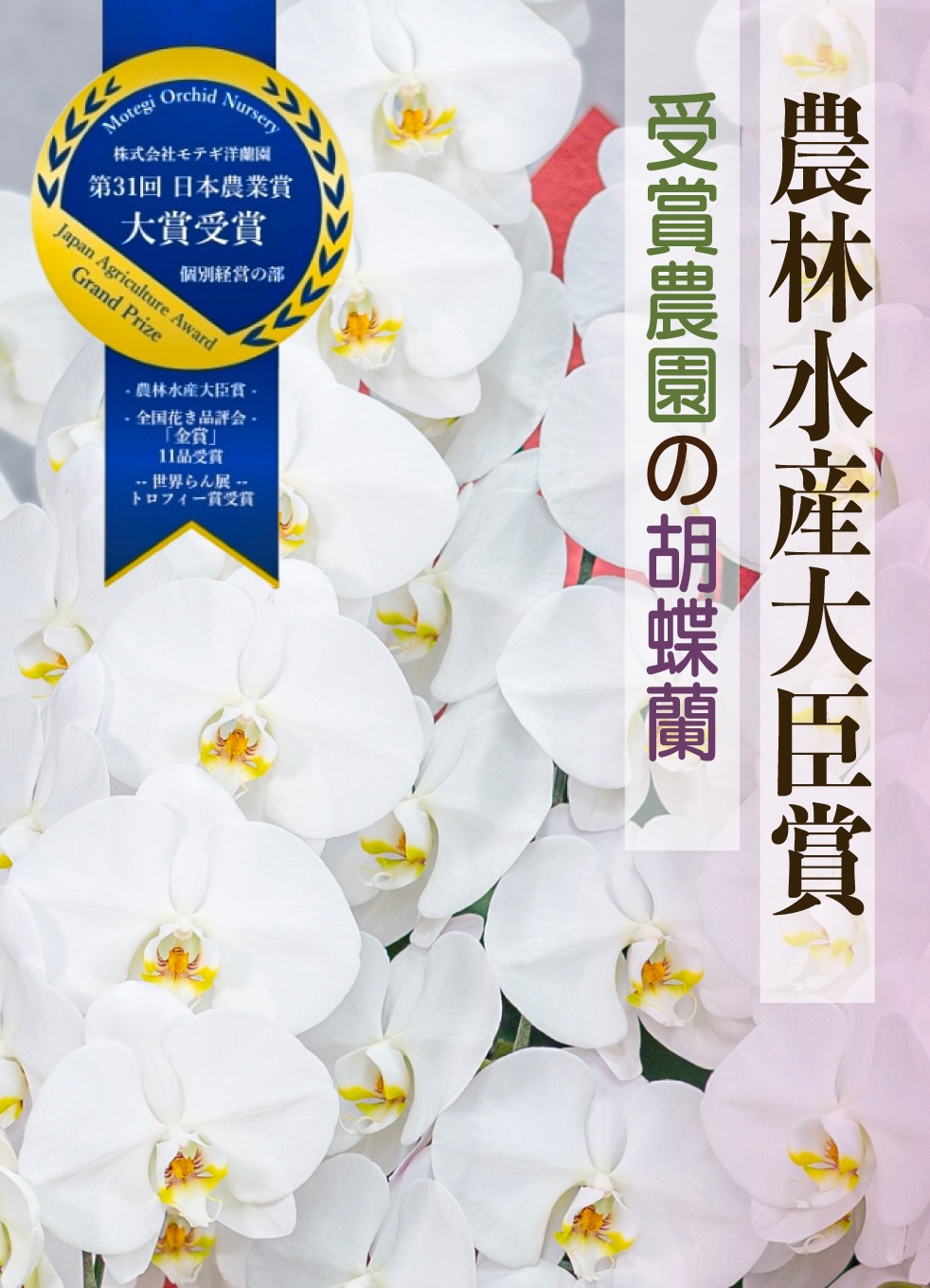 国内最高と評価されるモテギ洋蘭園の胡蝶蘭で安心で高品質の胡蝶蘭の王様「ホワイトロッキー」