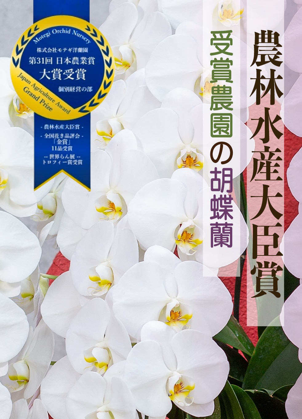 日本最高峰のブランド胡蝶蘭として、その美しさと品質は他に代えがたいものです。