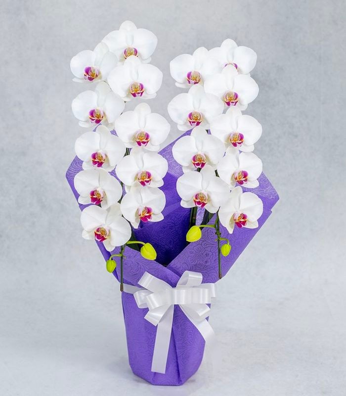 東京都内23区に限り胡蝶蘭の扱いになれた専任のスタッフにより配送・胡蝶蘭の設置まで行っております。贈り先様の開梱・設置の手間を省くことができ、大変ご好評をいただいております。ご注文の際に、自社便ご希望とご記入ください。