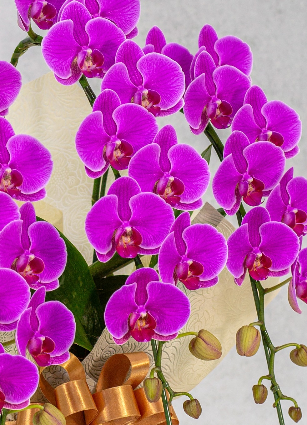 モテギ洋蘭園との独自契約により、農場より新鮮な胡蝶蘭を直接お届けしているため、お花の状態も良く他の産地の胡蝶蘭に比べてボリュームもあり沢山のお花が届くシーンでも、その存在感は目を引くこと間違いなしの商品となっております。