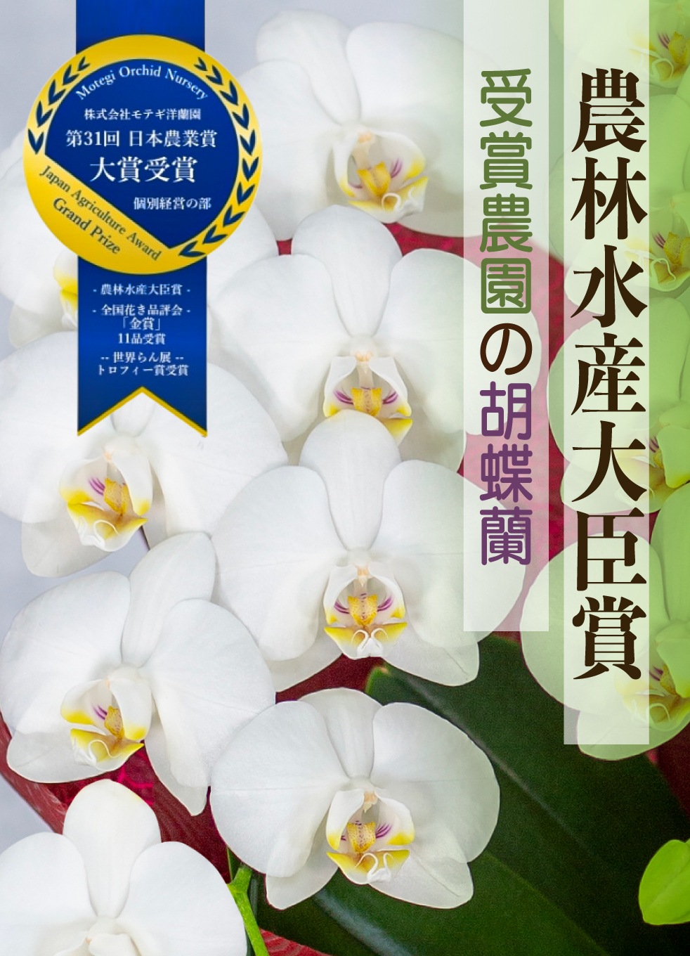 各種品評会で受賞歴があり、3年連続で農林水産大臣賞受賞をしている国内最高と評価されるモテギ洋蘭園の胡蝶蘭の品質をEFLAでぜひご体感ください。