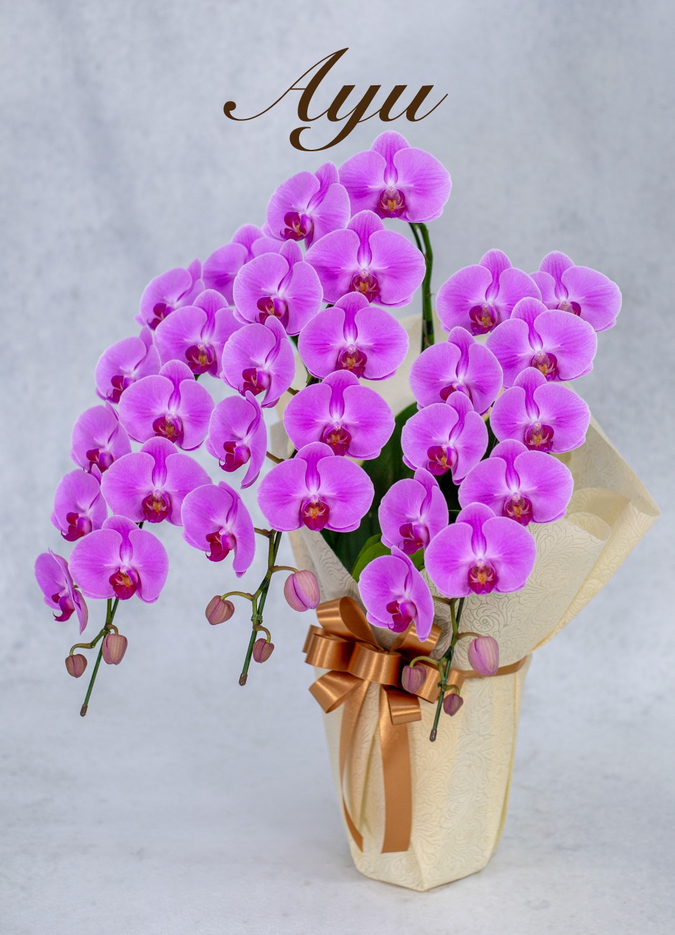 爽やかな中濃ピンクのミディ胡蝶蘭 アユは、3本立で33輪以上の豪華な花を楽しめます。大きな花と花持ちの良さが魅力のこの商品は、おしゃれなラッピングも選べるので、大切な方への贈り物に最適です。ぜひこの機会に美しい胡蝶蘭を手に入れて、心温まるひとときをお過ごしください。