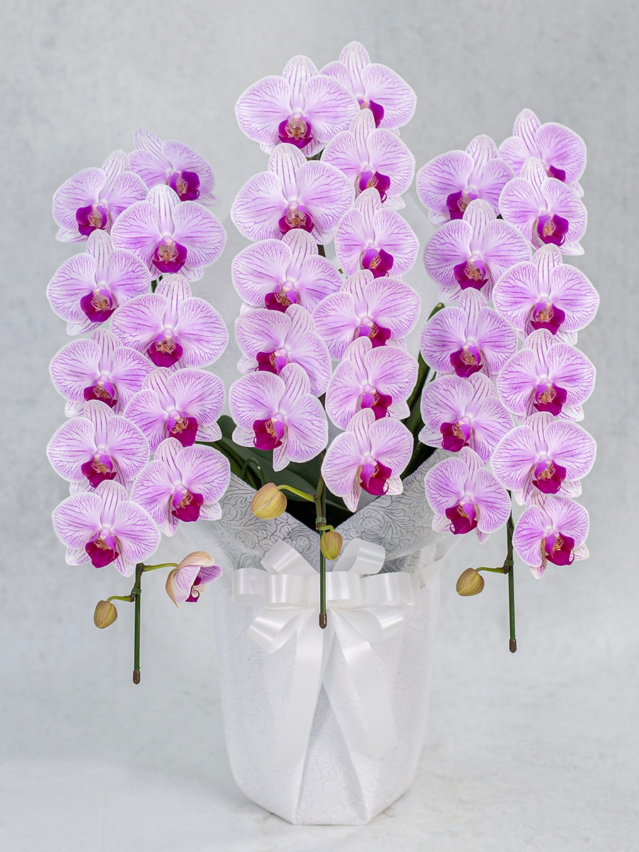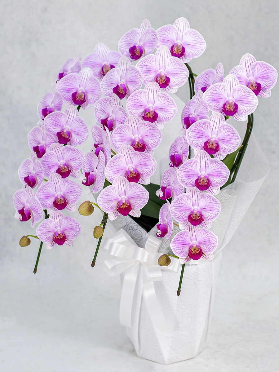 【お供え】ミディ胡蝶蘭 オリバー ストライプ 3本立 33輪以上 仏前 供養用ラッピング