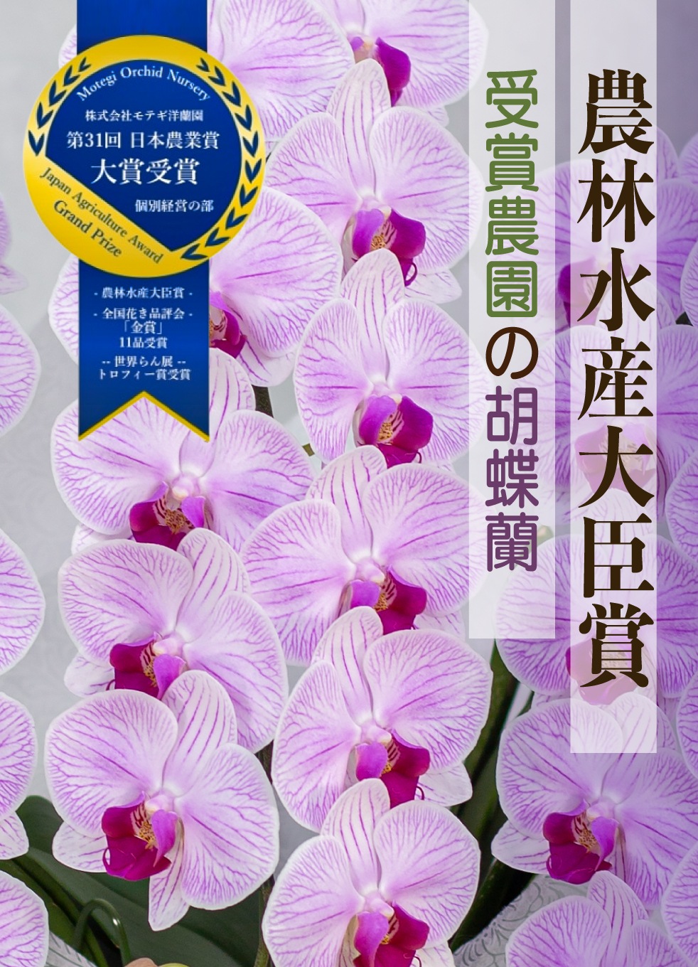 各種品評会で受賞歴があり、3年連続で農林水産大臣賞受賞をしている国内最高と評価されるモテギ洋蘭園の胡蝶蘭の品質をEFLAでぜひご体感ください。